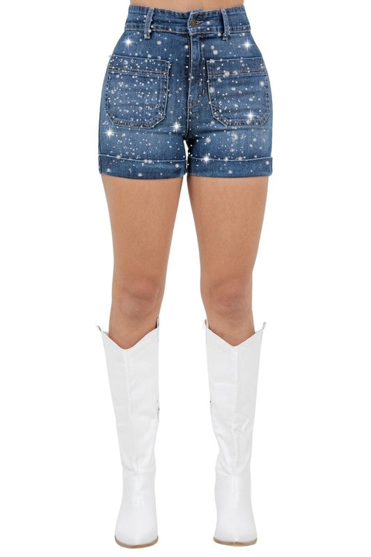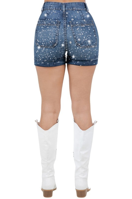Meet your new favorite shorts: The Willow Denim Short. Crafted with premium Japanese Cotton, these shorts are built to go the distance and deliver unmatched comfort. Featuring front and back pockets with hundreds of heat pressed rhinestone details, a cuffed hem, and a hand-washed look, these shorts will quickly become a must-have to Turn heads and be the center of attention!